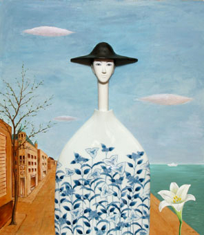 [花咲く港]  かつての商社や海運会社の社屋や倉庫、今に残るレンガ造りの建物が 肩を寄せ合うように、海岸通りに影を映す。 町は、この国の近代化とともに、その原動力のひとつだった。 石炭の集積地として、日本一の積出港として栄えた。  その頃、石炭は黒いダイヤと呼ばれ、そのきらめきに引き寄せられた人々で町は脹れ、 港は欲望と見果てぬ夢を呑み込み、沸き立ち、空前の活況を呈したという。 〈林立した帆船の檣〉や〈繚乱たる桜の花ざかり〉の光景を、 作家・火野葦平は、小説「花と龍」にしるしている。  やがて時代は去り、黒いダイヤも輝きを失った。宴のあとは虚しい。 残滓にまみれ、海に空に見る影は無く、花が散るように町は死んだ。  時が過ぎて港に魚の影が戻り、いつの間にか高層の住宅が立ち並んだ。 懐かしい匂いは剥ぎ取られ、水際はコンクリートで固められた。 海は、名も無き星々の深い眠りを湛え、その忘れられた夢の上にかもめが音もなく舞い落ちる。  いつかまた、この青空と薔薇色の雲に似合う花が咲くだろうか? 寂しい冬の時間が静かに流れてゆく。  わたしは、この町に生まれた